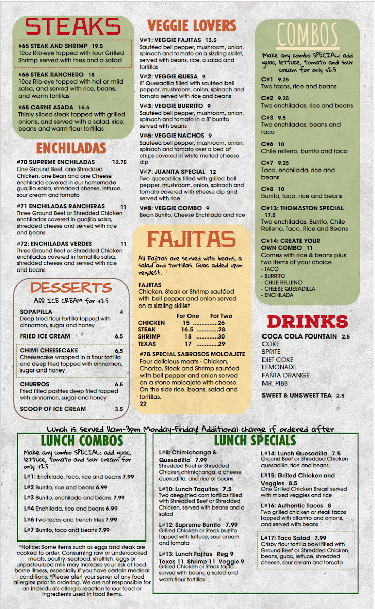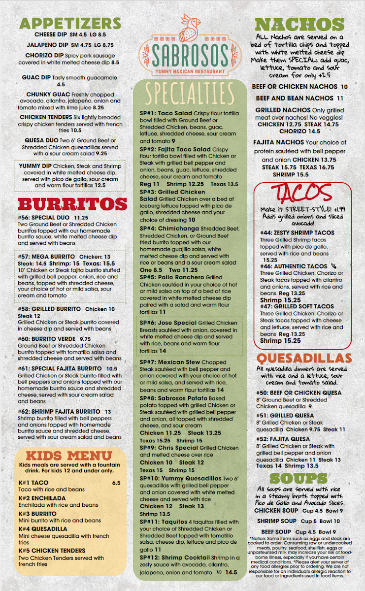 Welcome to Sabrosos Mexican Restaurant, where an authentic taste of Mexico awaits you at 111 W Gordon St, Thomaston, GA. This vibrant eatery showcases a mouthwatering menu that highlights the rich flavors of traditional Mexican cuisine.